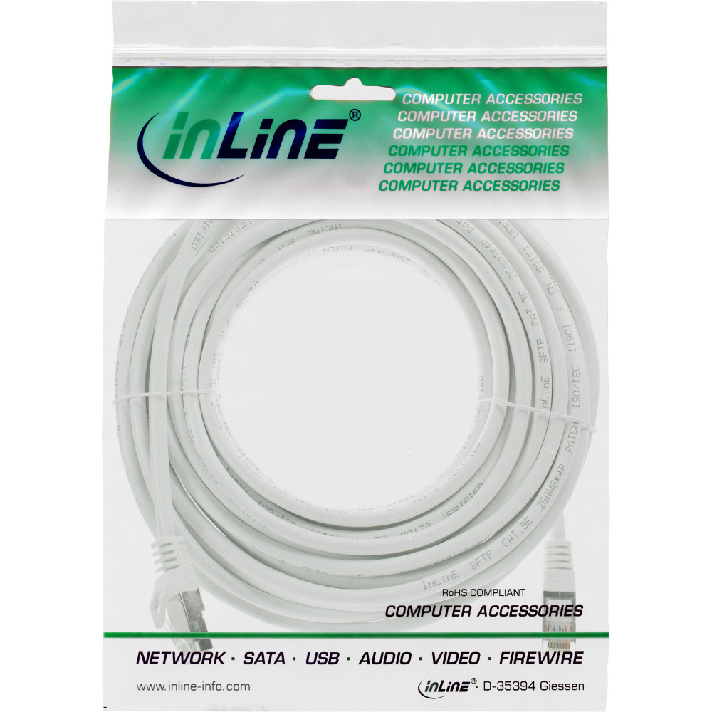 InLine Patchkabel, SF/UTP, Cat.5e, weiß, 10m, 10 m, Cat5e, SF/UTP (S-FTP), RJ-45, RJ-45, Weiß