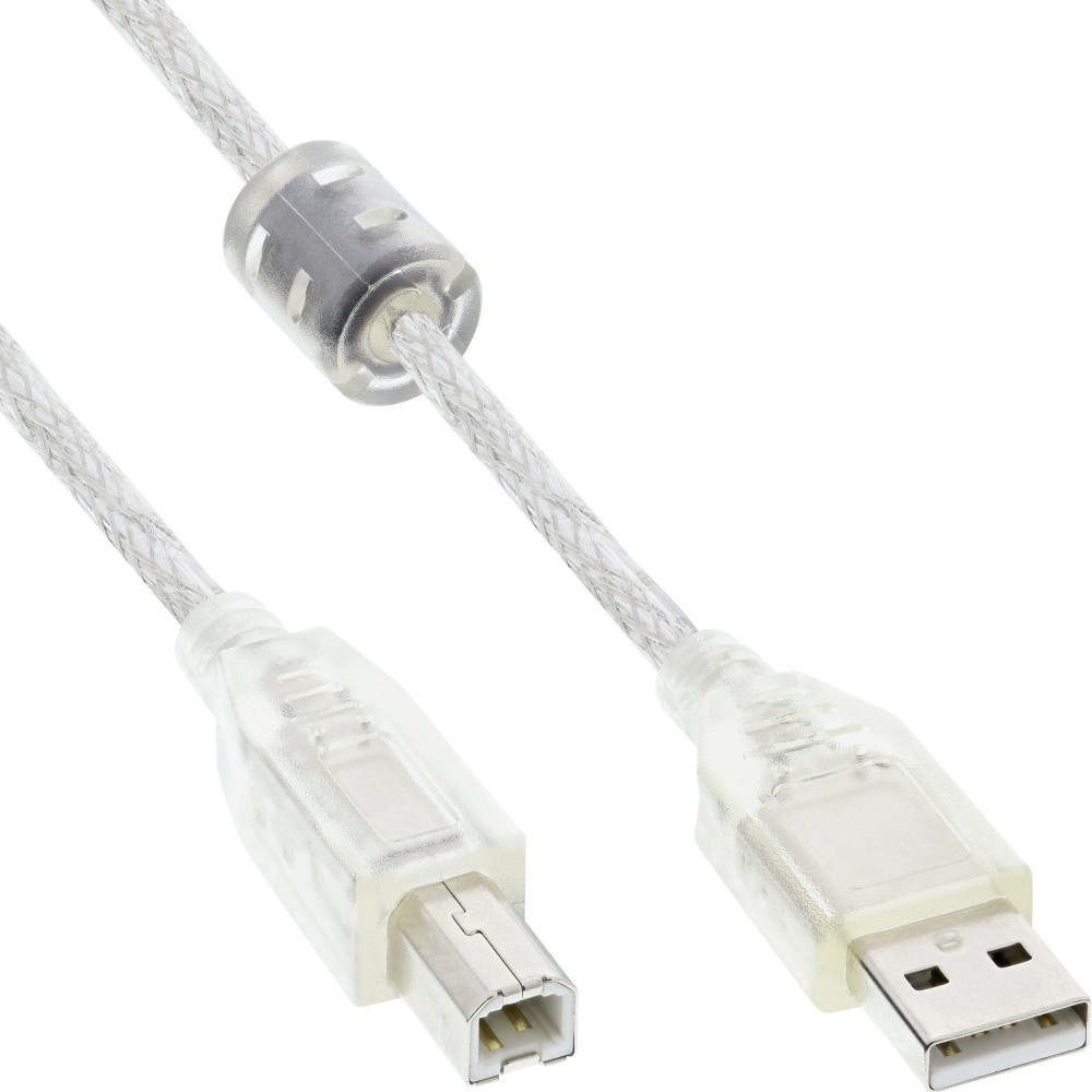 InLine USB 2.0 Kabel, A an B, transparent, mit Ferritkern, 1m, 1 m, USB A, USB B, Männlich/Männlich, Transparent