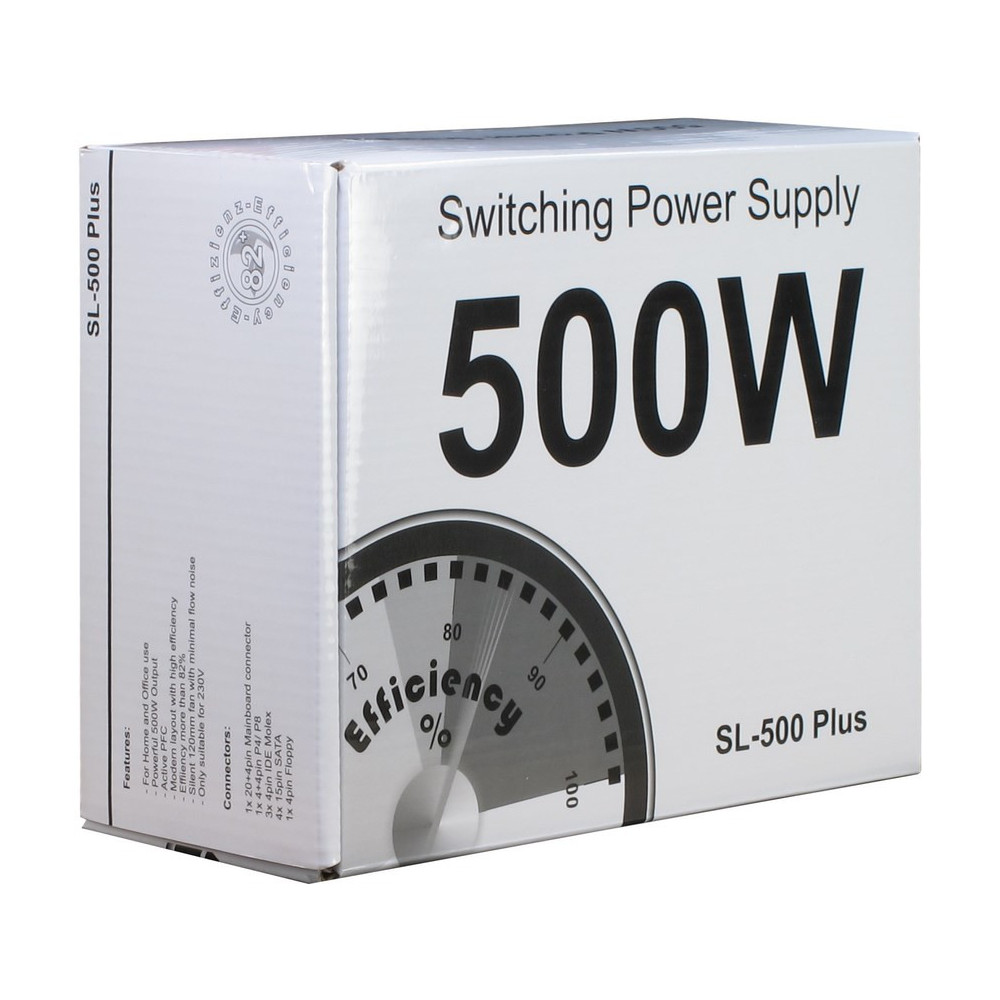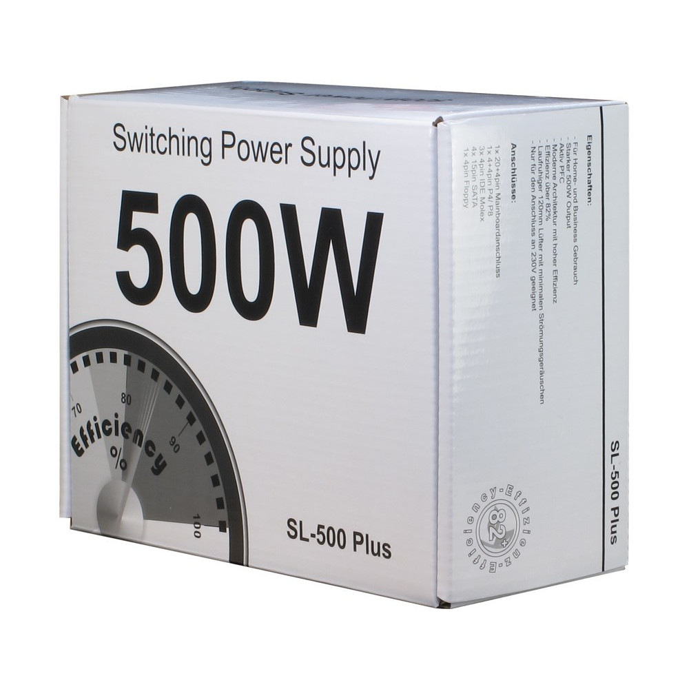 Inter-Tech SL-500 Plus, 500 W, 230 V, 50 - 60 Hz, 3 A, Aktiv, 120 W