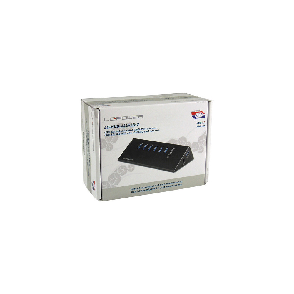 LC-Power USB Hub, USB 3.2 Gen 1 (3.1 Gen 1) Type-A, USB 3.2 Gen 1 (3.1 Gen 1) Type-A, 5000 Mbit/s, Schwarz, Aluminium, Kunststoff, CE