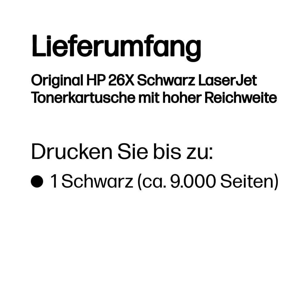 HP Original 26X Schwarz LaserJet Tonerkartusche mit hoher Reichweite, 9000 Seiten, Schwarz, 1 Stück(e)