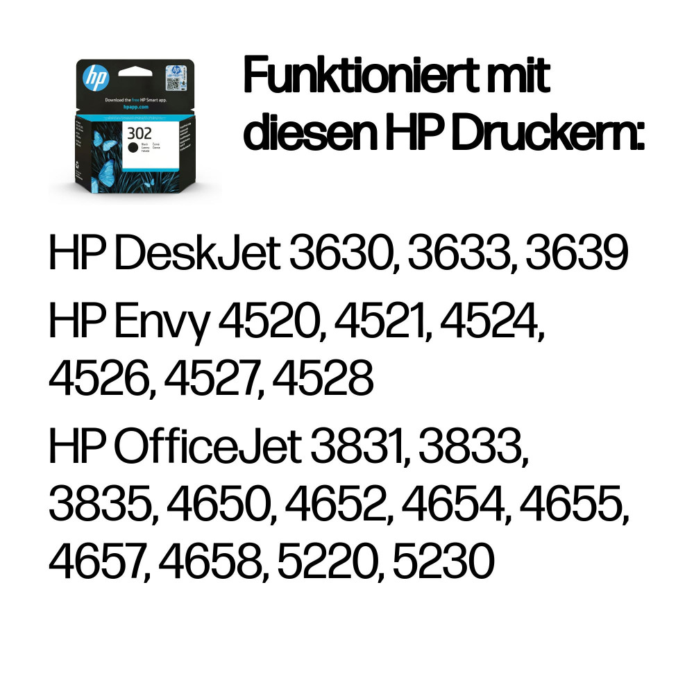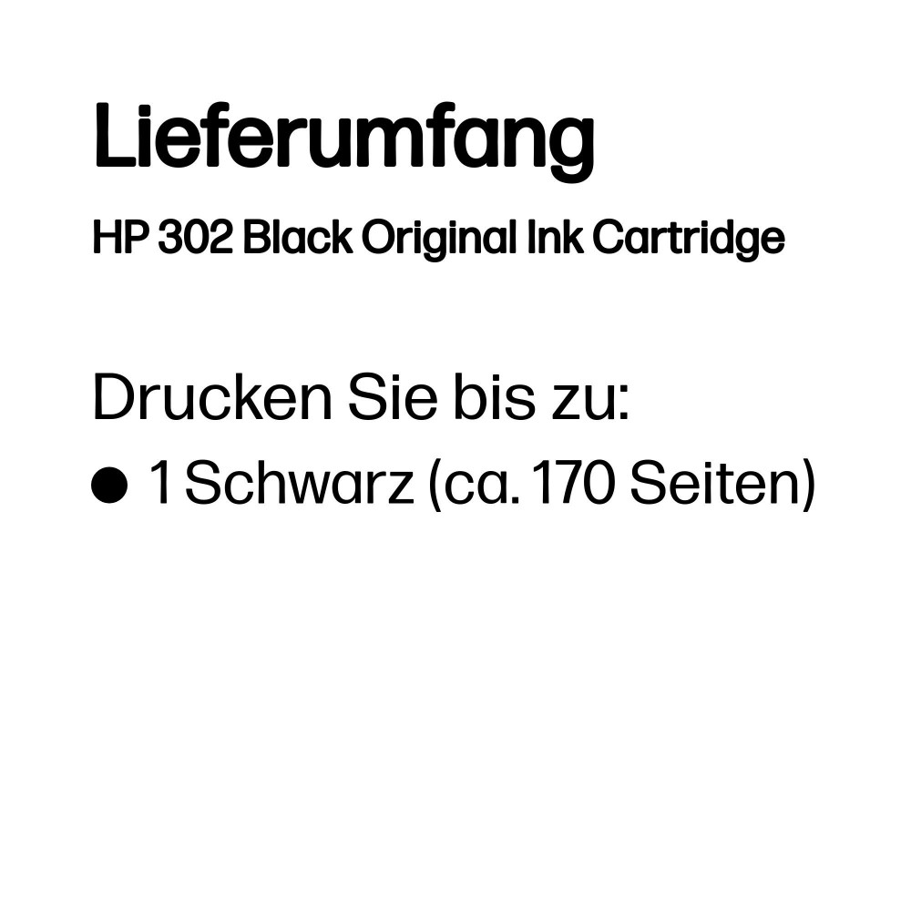 HP Original 302 Schwarz Druckerpatrone, Standardertrag, Schwarz, Tinte auf Pigmentbasis, 3,5 ml, 1 Stück(e), 170 Seiten